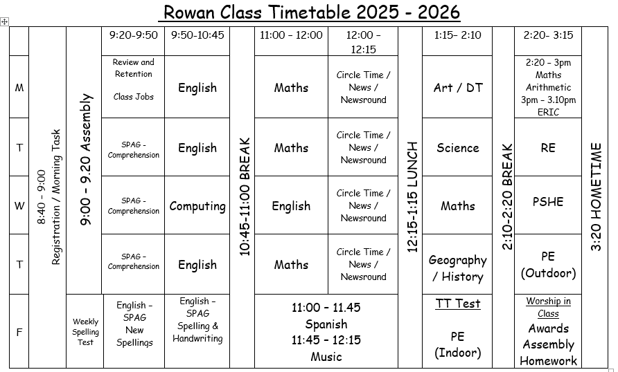 Rowan Class (Year 4) 2025 - 2026