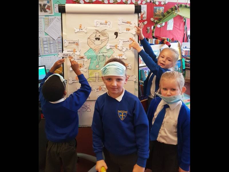 Class 3 performed some 'contraction surgery' during spelling lessons this week. Inkeeping with our topic for this half term 'Nurturing Nurses.