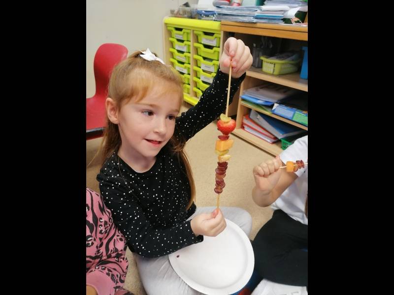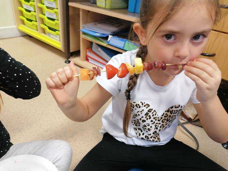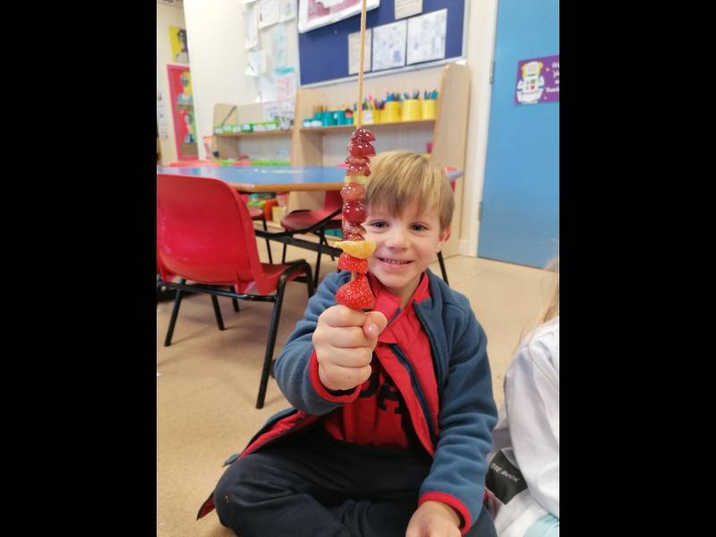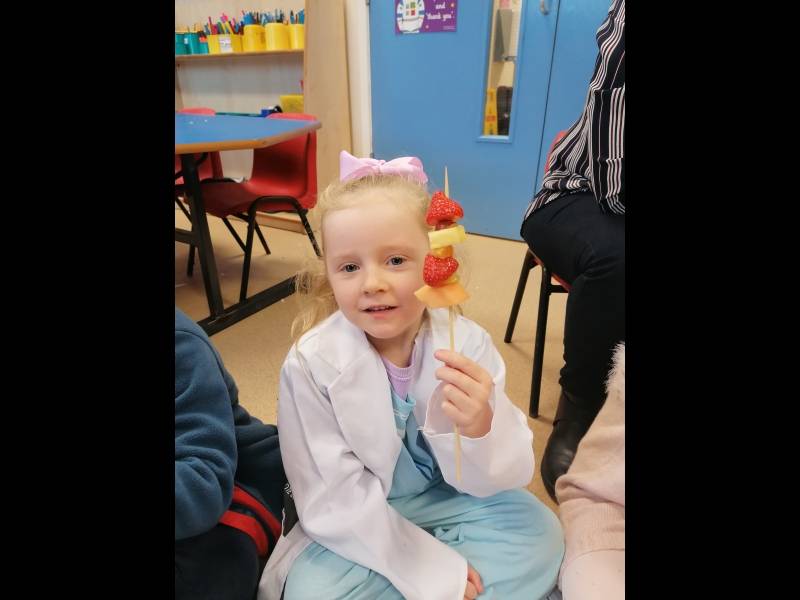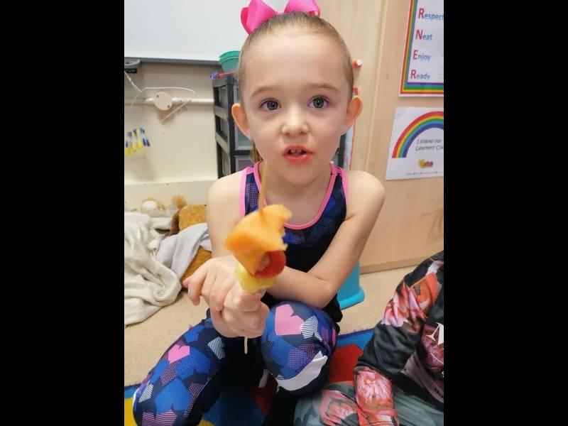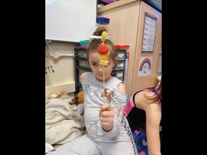 Jack's granny was sick! The doctor said she had the moozles and she would need some flumflum fruit to cure her. We talked about healthy food choices and we made some delicious fruit kebabs. Jack and his friends went on a journey to find the Flumflum fruit and thankfully granny is now feeling much better.
